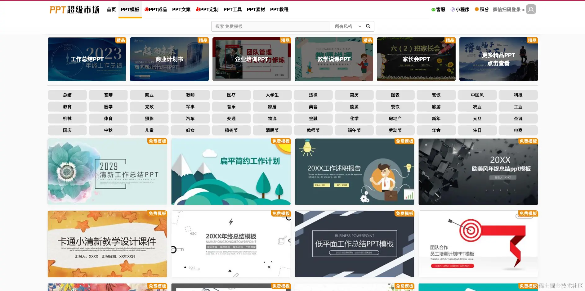 PPT超级市场(网页端) 这是一款完全免费的高质量PPT下载网站,此软件没有任何的广告,完全用爱发电,软件目前收录了将近万款实用PPT,全部无限制免费下载使用,非常的良心。