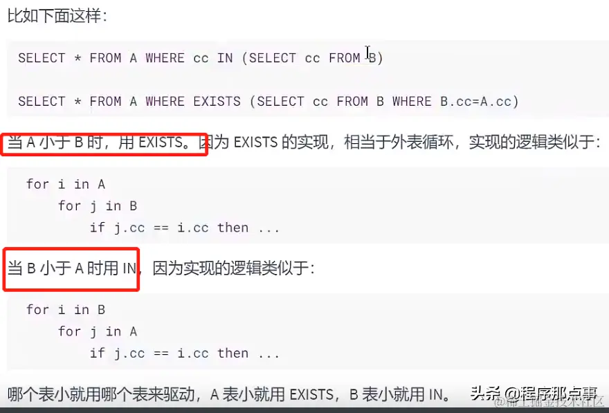 - exists和in:小表驱动大表