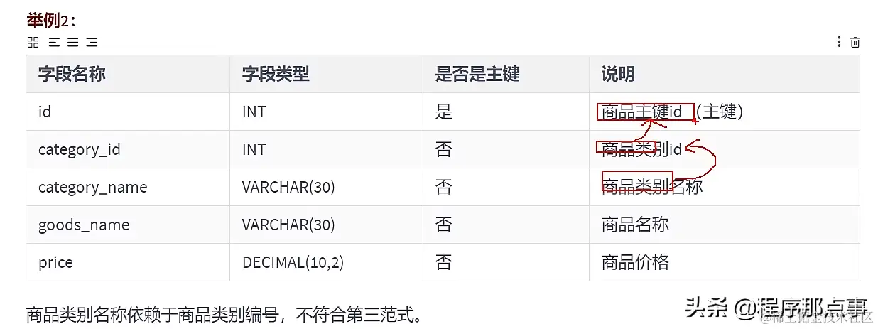 - 第三范式:确保非主键之间是相互独立的,不能产生依赖。下图就不满足
