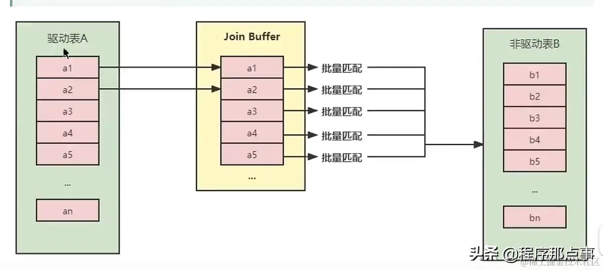 - Block Nested-Loop Join(块嵌套循环连接):不再逐条获取驱动表的数据,而是一块一块的获取,引入join buffer缓存区