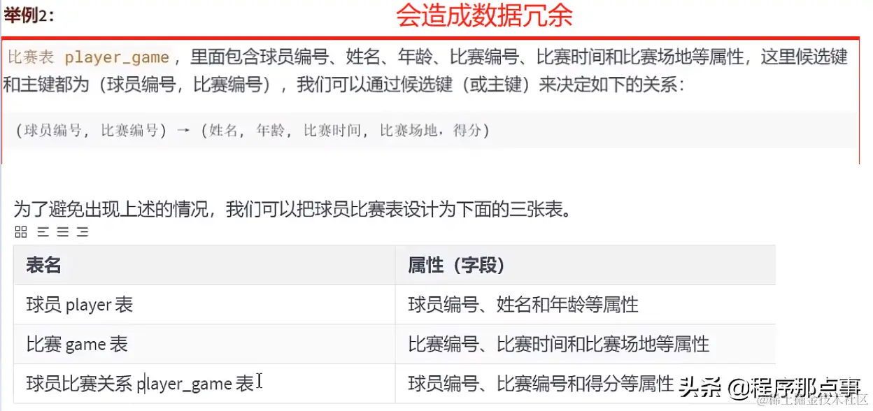 注意:这里的主键是联合主键。比如下图:姓名,年龄依赖球员编号;比赛时间,比赛场地依赖比赛编号;只有得分全部依赖
