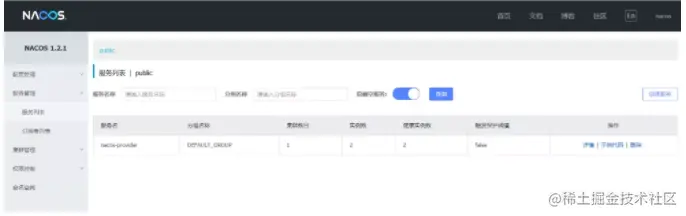- @EnableDiscoveryClient Spring Cloud 提供的注解,用于开启 Spring Cloud 的服务注册与发现,由于这里引入了 spring-cloud-starter-alibaba-nacos-discovery,所以服务注册与发现会使用 Nacos 的实现。这与 Eureka 或者 Consul 的操作是一样的。