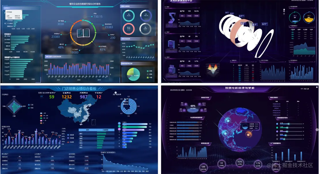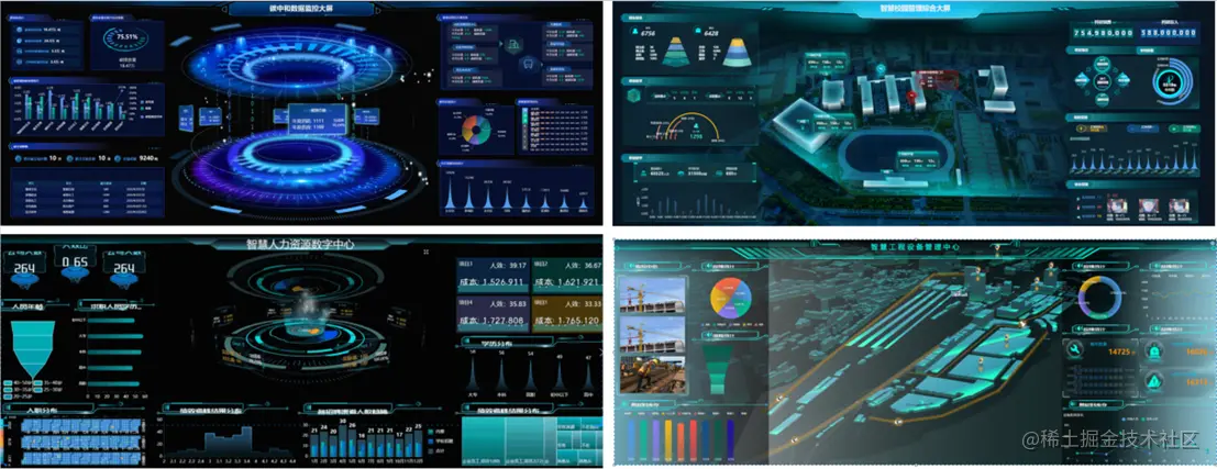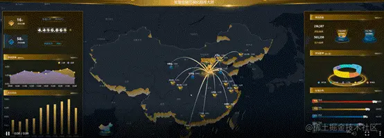 相信对于从事大数据相关的人员来说,数据的可视化大屏是最能展现自己工作价值的一个途径。可视化大屏就是数据分析的最后成果的展示,而如果能设计出更直观、更酷炫、更具有科技感的大屏,更能获得客户的青睐。 那么客户喜欢的究竟是怎样的可视化?类似下图这种的: