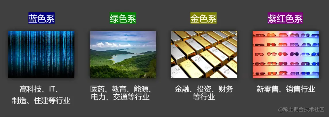 那针对大屏设计给大家推荐一个公开课,保证让你看完受益匪浅,除此之外,联系对应的小助手,还有免费的素材包可以领取呢~ 7、大屏颜色搭配 人们最直观的感受就是颜色,可以用主色去强调重点内容,让用户可以更快速的识别重要信息,我们也一起了解一下不同行业的色彩属性: