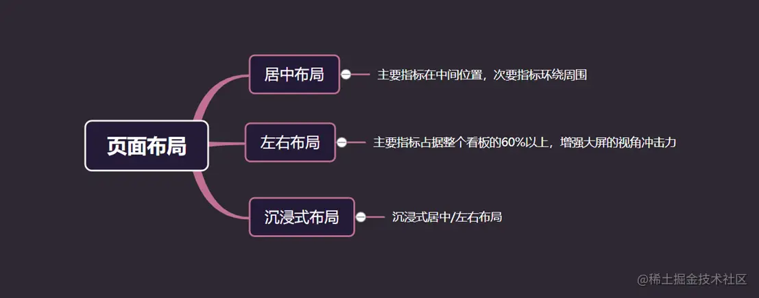 4、页面布局的划分 确定好看板的尺寸和指标后,接下来需要对大屏进行页面的划分,划分可以参考这个几个原则: