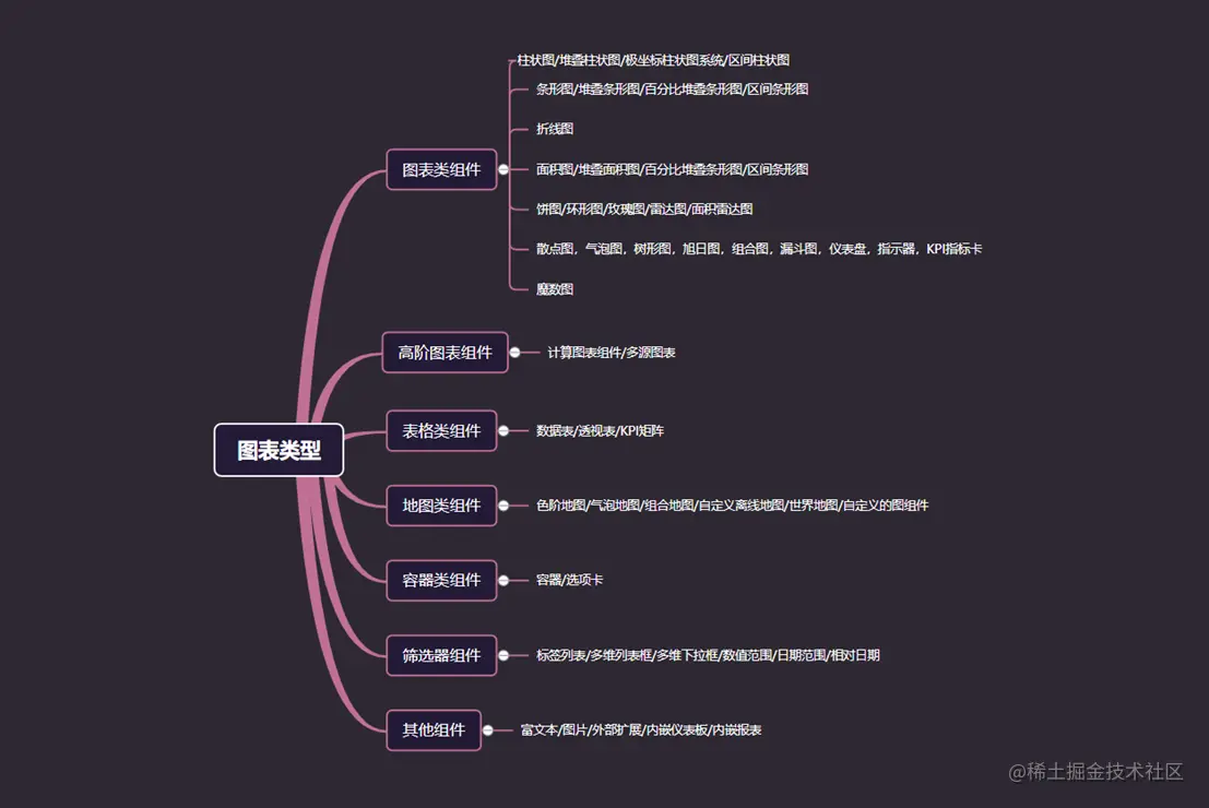 5、确定图表展示类型 布局确定后,这下就需要选择对应的图表去进行数据展示了,那在选定图表时需要注意,要选择容易理解,容易实现的图表,这样在设计时才可以更快,设计好后用户理解才会更加容易。这里给大家推荐wyn(商业智能软件),它对应的帮助文档里针对各个组件进行详细的描述,这样大家在使用时就可以更方便的进行选择啦。