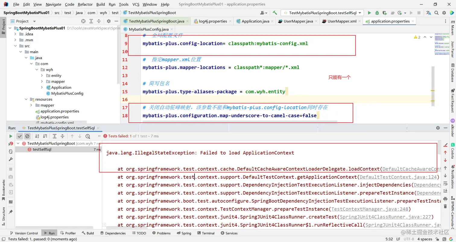 #关闭自动驼峰映射,该参数不能和mybatis-plus.config-location同时存在