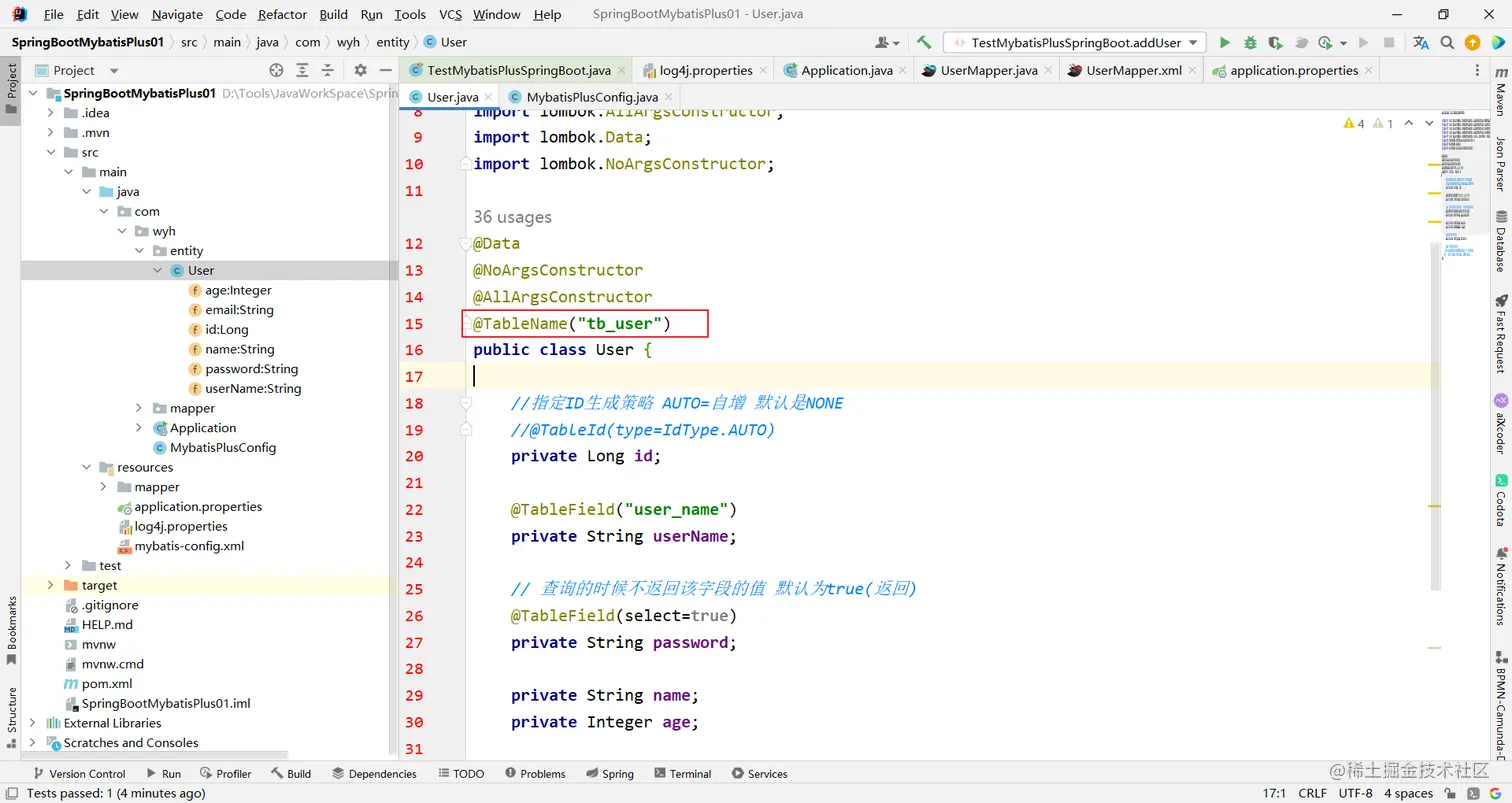 还记得在实体里面我们的一个配置吗 @TableName( "tb_user" )