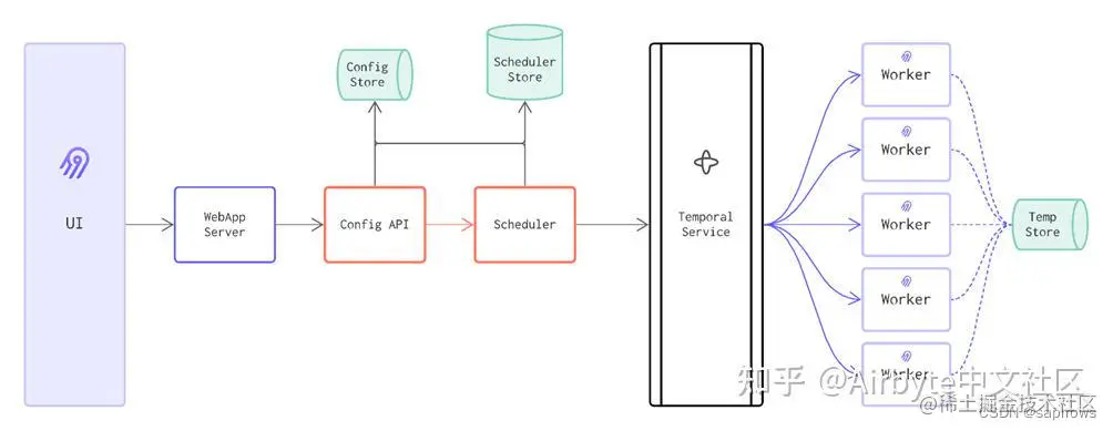 Scheduler:调度程序从 API 获取工作请求,并将其发送到临时服务进行并行化。它负责跟踪成功/失败,并根据配置的频率触发同步。