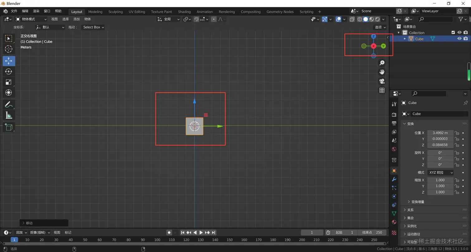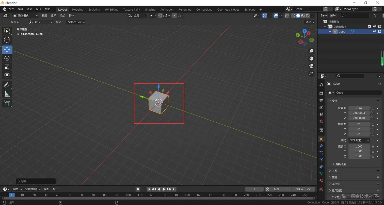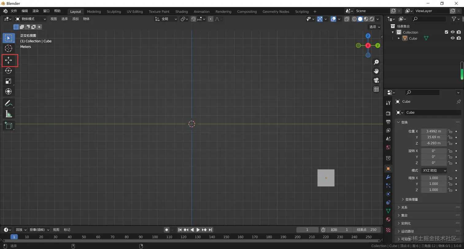 框选整个物体,物体上出现了移动光标