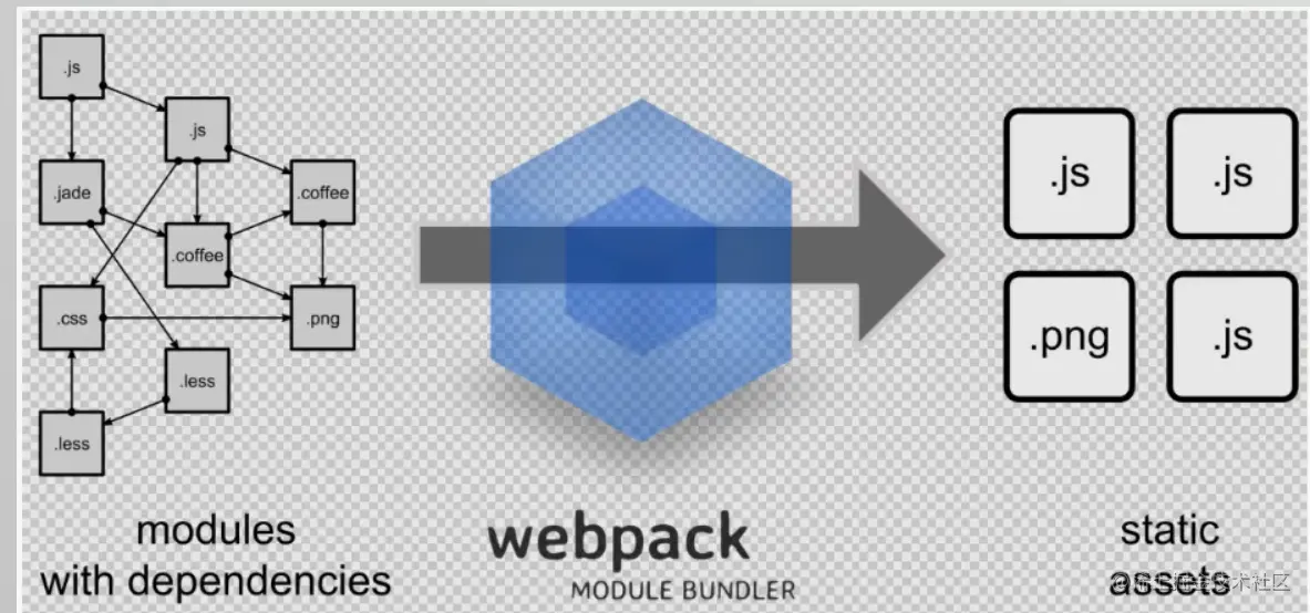 从图中我们可以看出,Webpack可以将多种静态资源js,css,less 转换成一个静态文件,减少了页面的请求。