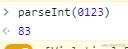 注:浏览器看到0123会自动转成83,所以parseInt(0123)实际上是parseInt(83),则结果就是83