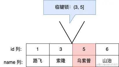 假设,表中有一个范围 id 为(3,5] 的 next-key lock,那么其他事务即不能插入 id = 4 记录,也不能修改 id = 5 这条记录。