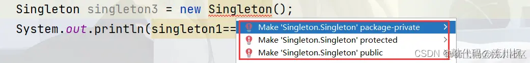 System.out.println(singleton1==singleton2);