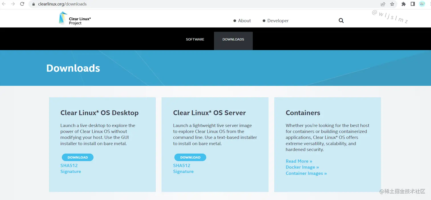 下载 Clear Linux 时,您可以在三个选项中进行选择: