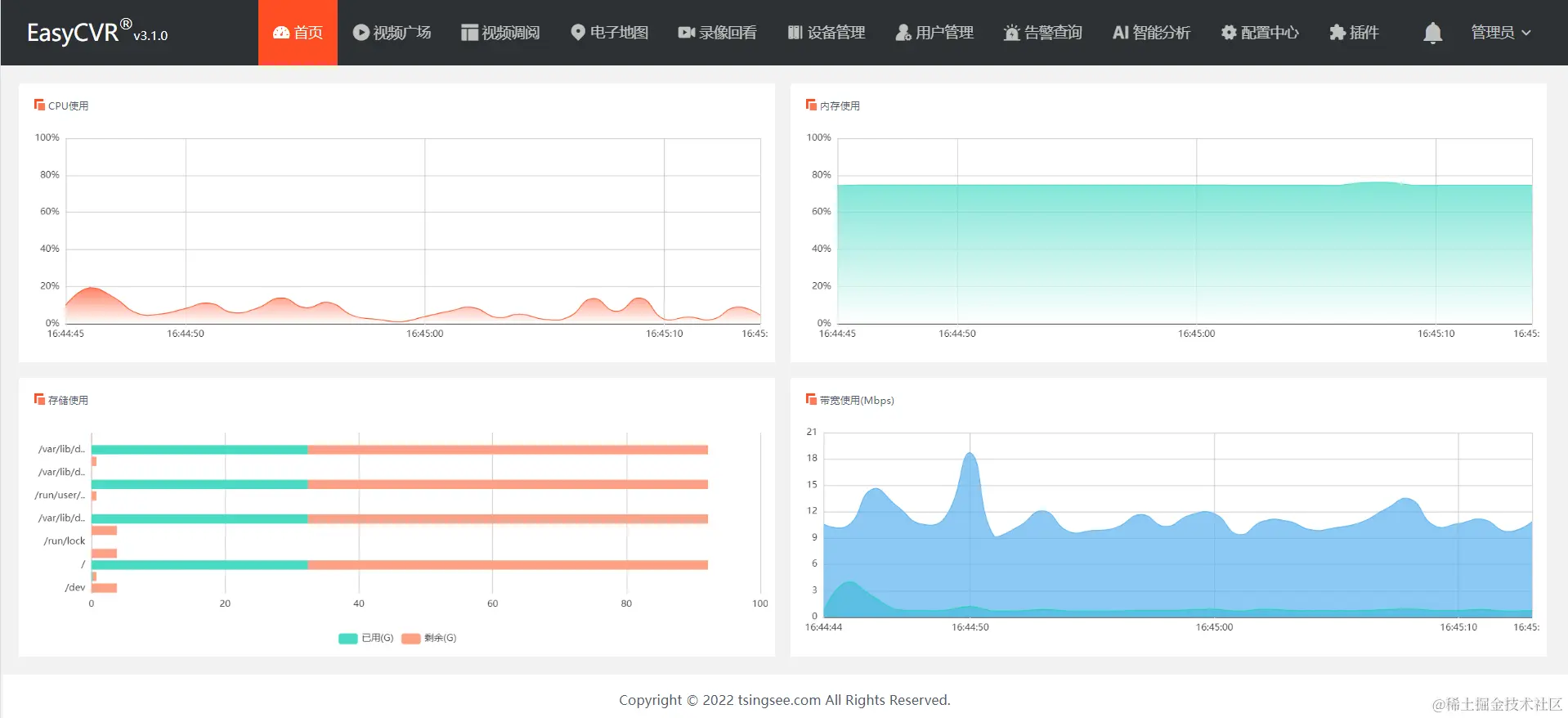 EasyCVR平台可支持多类型设备、多协议方式接入,可覆盖市面上绝大多数的视频源设备,包括:IPC、NVR、视频编码器、移动执法仪、应急布控球、移动单兵等。将EasyCVR与智能分析网关结合使用,可以实现基于云、边、端架构的视频融合能力、AI智能检测分析及算力的精细化调度等能力,该方案的应用场景也十分广泛,包括:通用安防、智慧安监、明厨亮灶、智慧景区、区域安全监测等。感兴趣的用户可以前往演示平台进行测试与部署。