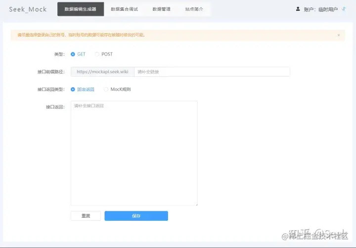 临时用户的意义也就是所有人都可以看到你所添加的接口,我也称之为公域的接口,仅做为测试该网站效果所用