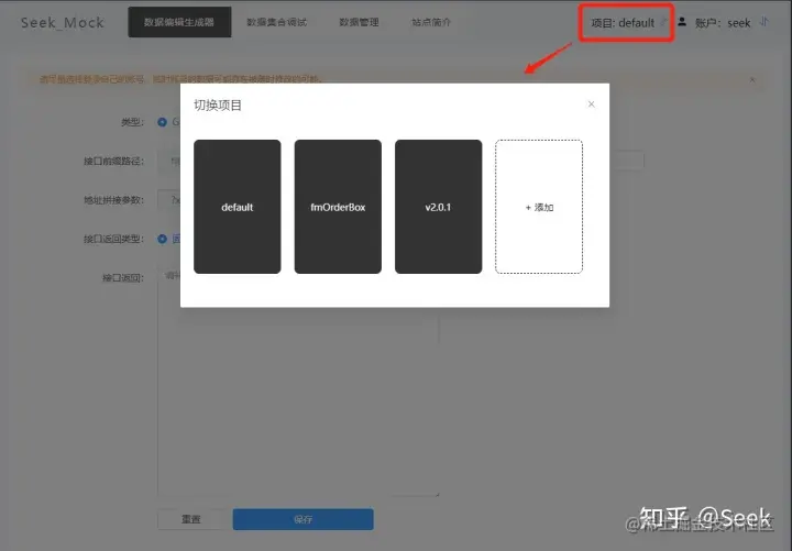 当项目登录自有账户的时候,会默认新增一个default的项目,你可以自定义新增所需要的<版本 or 项目名>,在不同项目维度下,数据是独立的存在