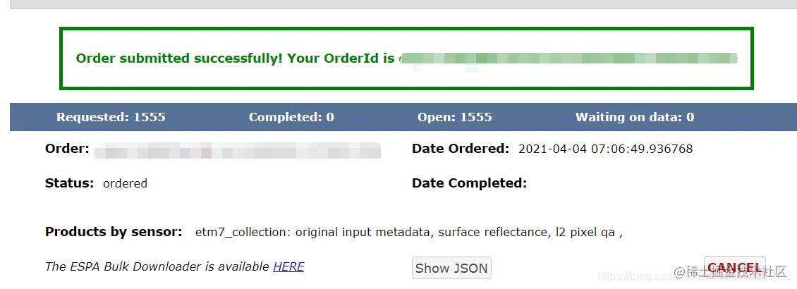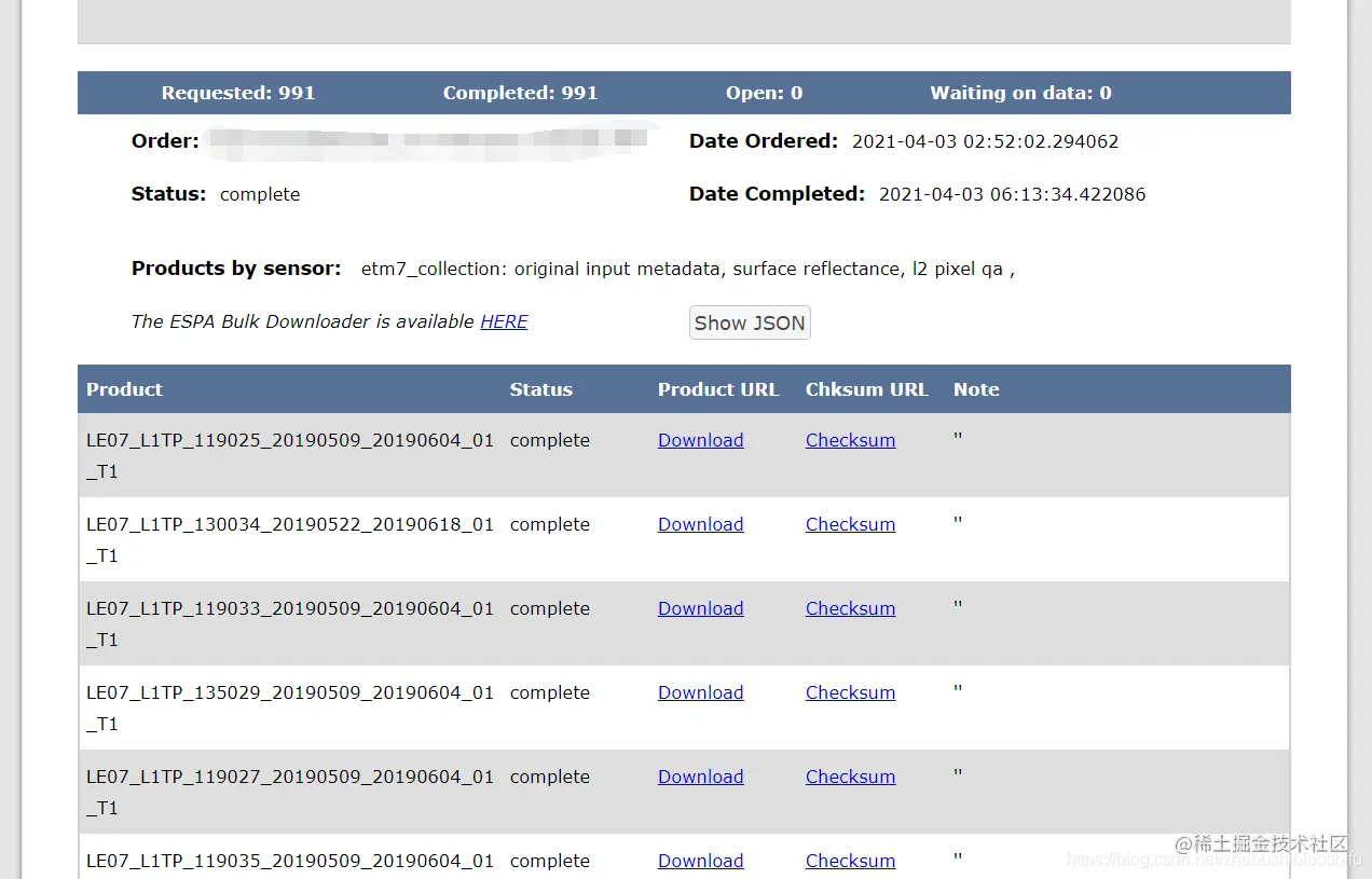可以看到订单的信息以及每一景图像都对应了一个下载链接。