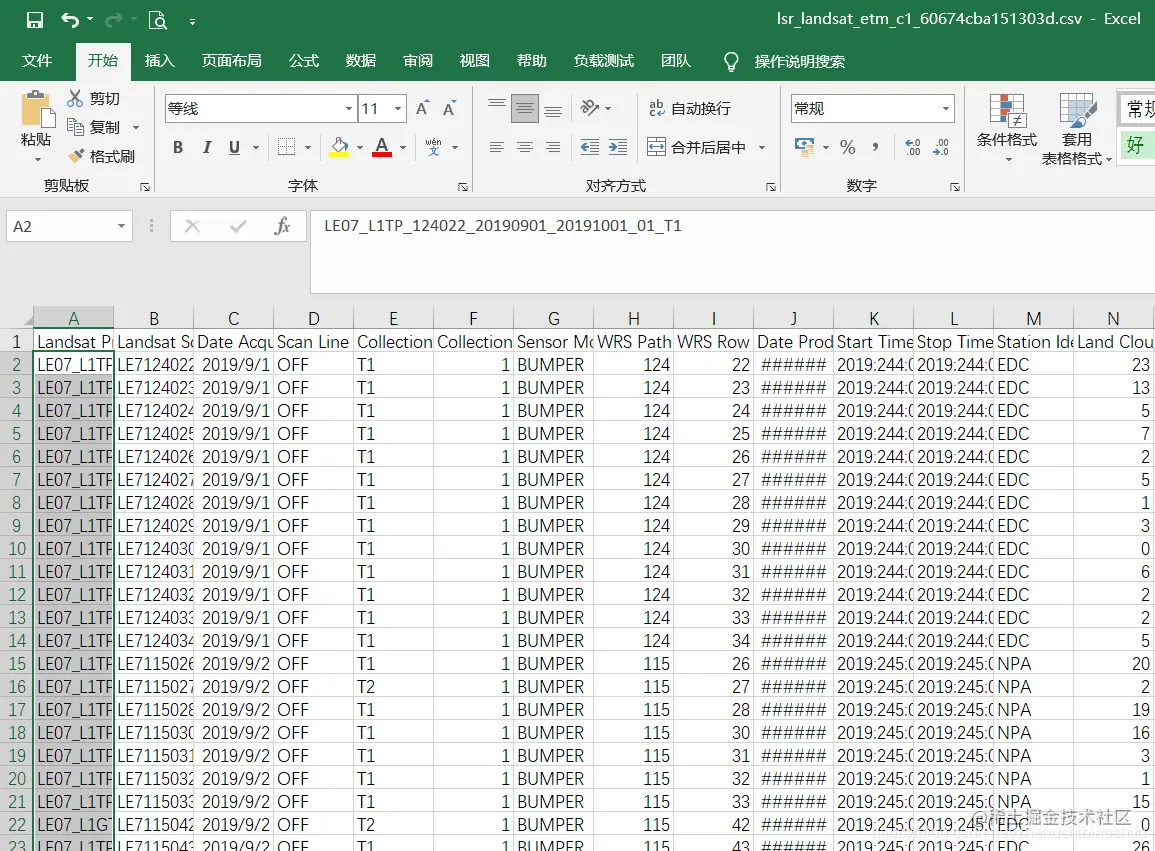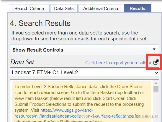 等待结束,可以看到结果。如果我们选择了多种卫星传感器对应的遥感影像,那么就需要在下图中的红色框内进行下拉勾选。由下图可以看到,Landsat 7对应的搜索结果共有1613张影像。