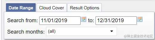 而本文中,我们直接通过Google Earth Pro划定研究区域并导出.kmz文件,从而作为研究区域;将.kmz文件导入EarthExplorer后,选择需要下载的遥感影像时间范围。