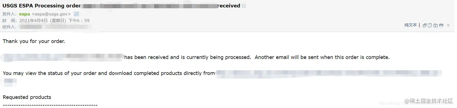 等待一定时间后,我们的账号注册关联邮箱将会收到一封邮件,告诉我们刚刚提交的订单生成了遥感影像名称文件。