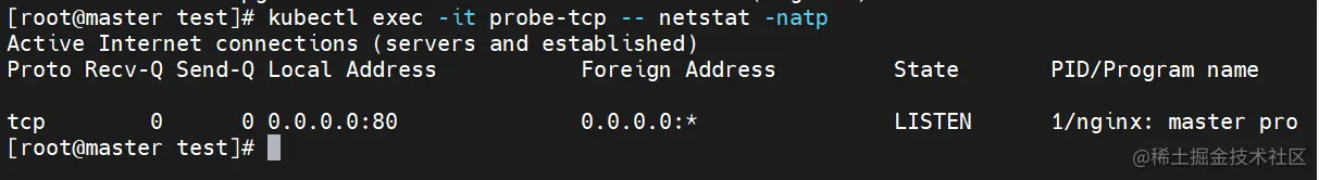 kubectl exec -it probe-tcp -- netstat -natp