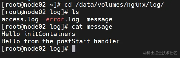 command: ["/bin/sh", "-c", "echo 'Hello initContainers' >> /var/log/nginx/message"]