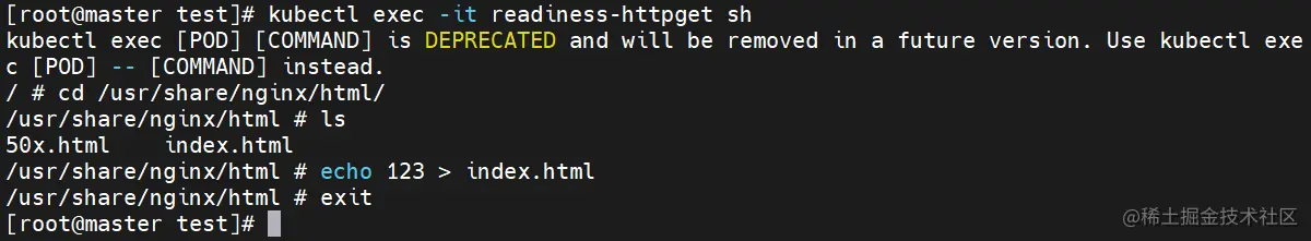 kubectl exec -it readiness-httpget sh