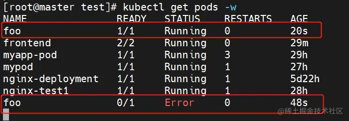 #查看Pod状态,等容器启动后30秒后执行exit退出进程进入error状态,就会重启次数加1