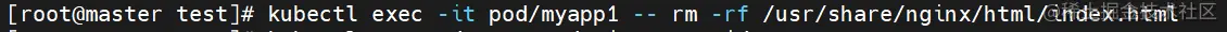 kubectl exec -it pod/myapp1 -- rm -rf /usr/share/nginx/html/index.html