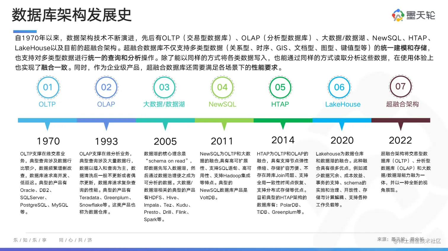 本月报告重点介绍了数据库架构如何从OLTP、OLAP到NewSQL、HTAP、LakeHouse再到超融合数据库的演进历程,及不同架构的技术特性,并详解多模数据库的技术原理与发展趋势。最后,精选展示了几则国内典型的超融合数据库、多模数据库产品的架构特性与应用场景。