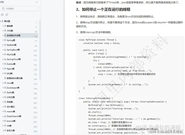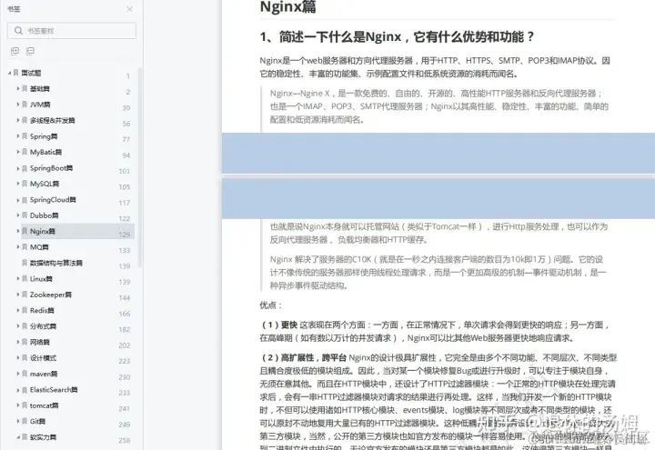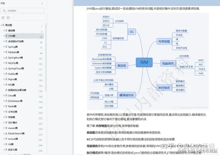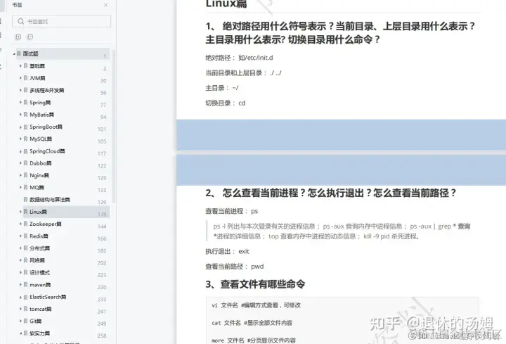 里面总共含了基础篇、JVM 篇、多线程 &并发篇、Spring 篇、MyBatis 篇、Spring Boot 篇、MySQL 篇、Redis 篇、Spring Cloud 篇、Nginx 篇、MQ 篇、数据结构与算法篇、Linux 篇、简历篇 14 个技术栈。可以说包含了行业内所有的知识点,