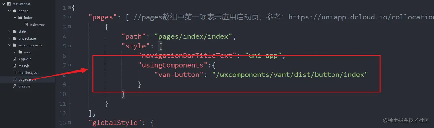 "van-button": "/wxcomponents/vant/button/index"//按需引入组件