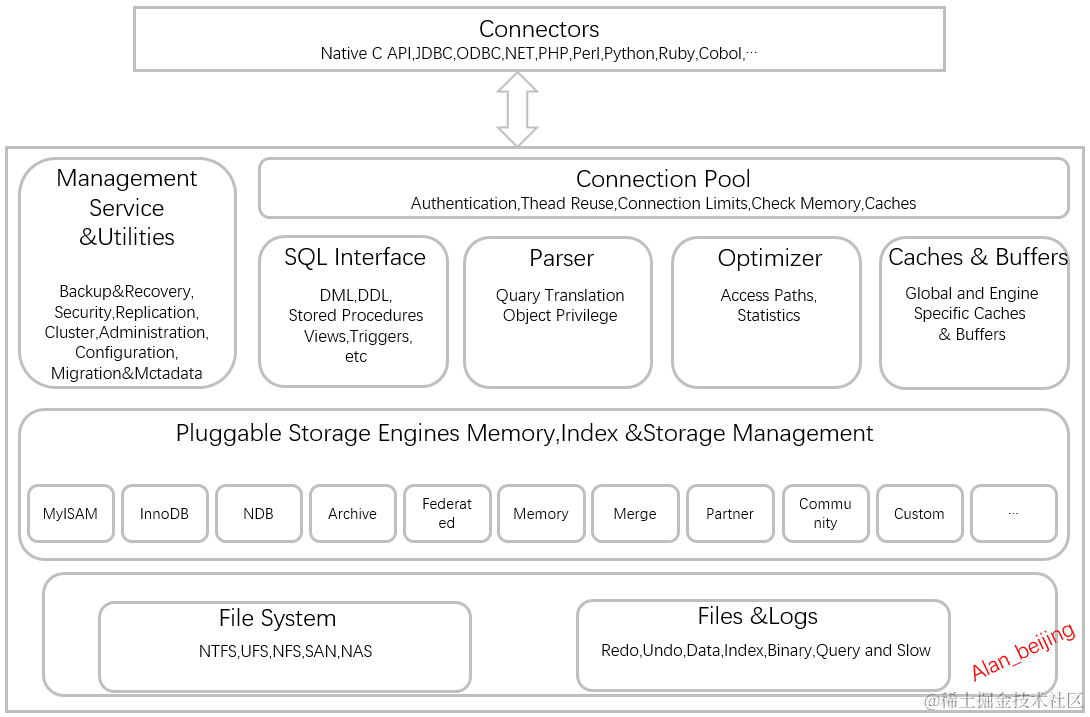 MySQL基架大致包括如下几大模块组件: