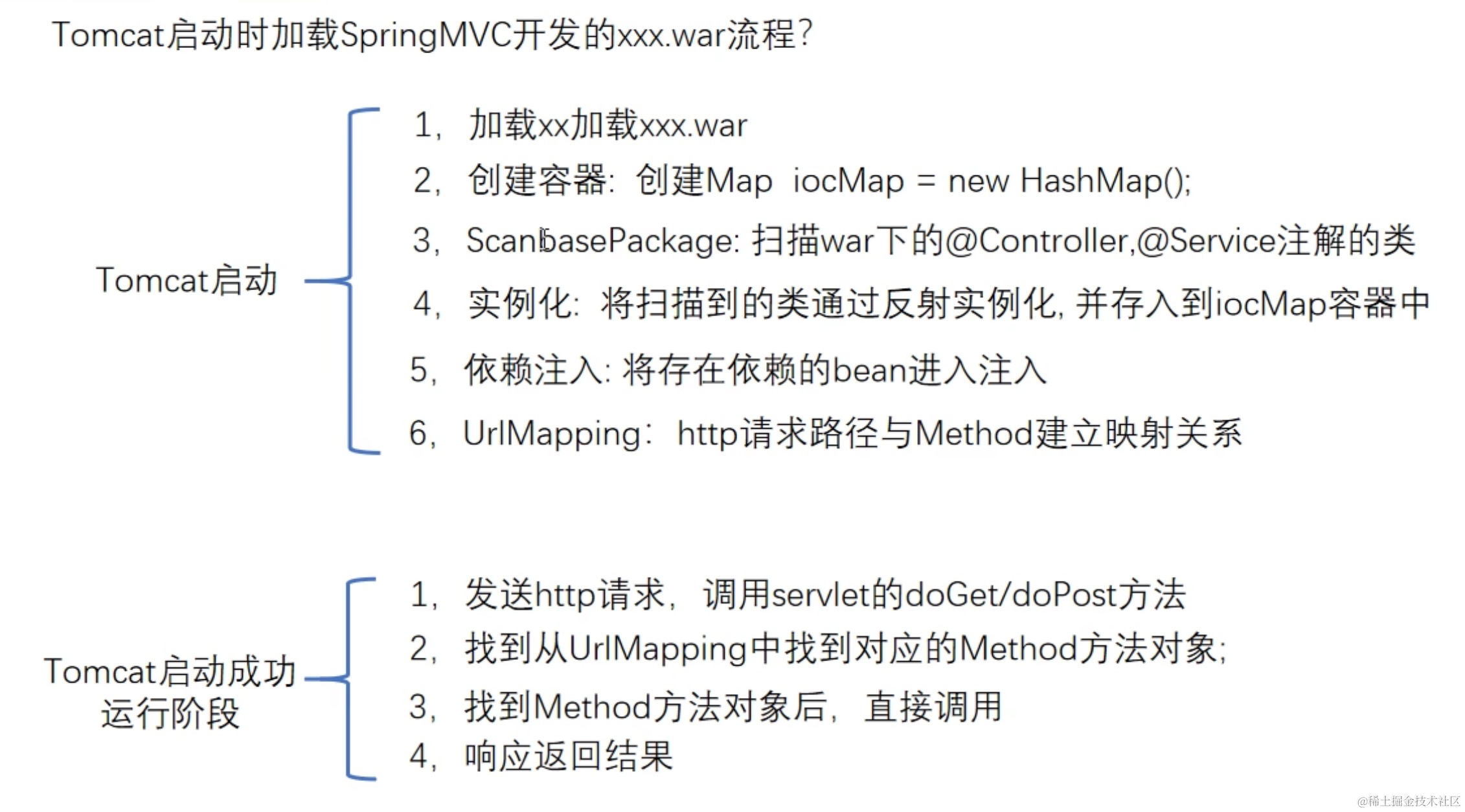 @Autowared的时候,通过map的get方法去获取对应的bean - 当浏览器输入一个url,如何通过对应的url找到对应的处理方法?(handlermapping),当tomcat在加载控制类的时候,类上面是有路径的,包括方法上面的也是有路径的,当实例化bean的时候, 会将类上的路径和方法上的路径拿出来进行拼接,然后绑定成一个键值对,这样就可以对一个方法进行对应的url的映射,这些很多的方法很多的路径集合成为一个handlermapping