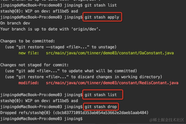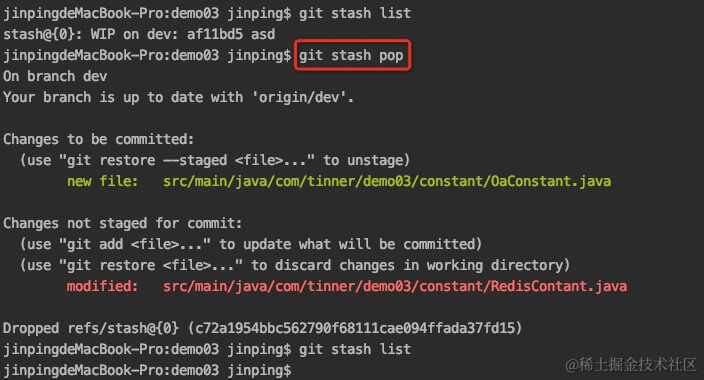 另一种方式是用git stash pop,恢复的同时把stash内容也删了