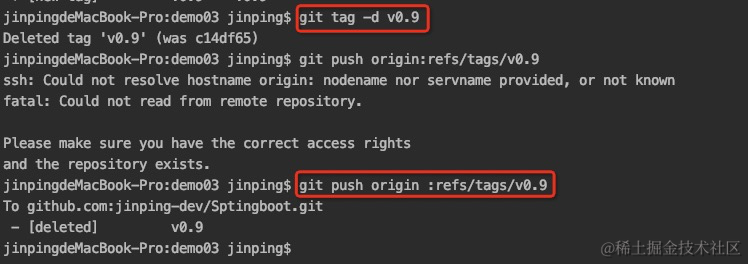 删除远程tag: