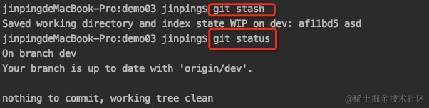 git stash命令,之后再来查看状态:\储藏代码