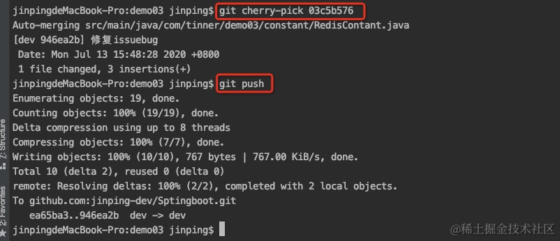 同样的bug,要在dev上修复,我们只需要把修复issuebug这个提交所做的修改“复制”到dev分支。注意:我们只想复制修复issuebug这个提交所做的修改,并不是把整个master分支merge过来。