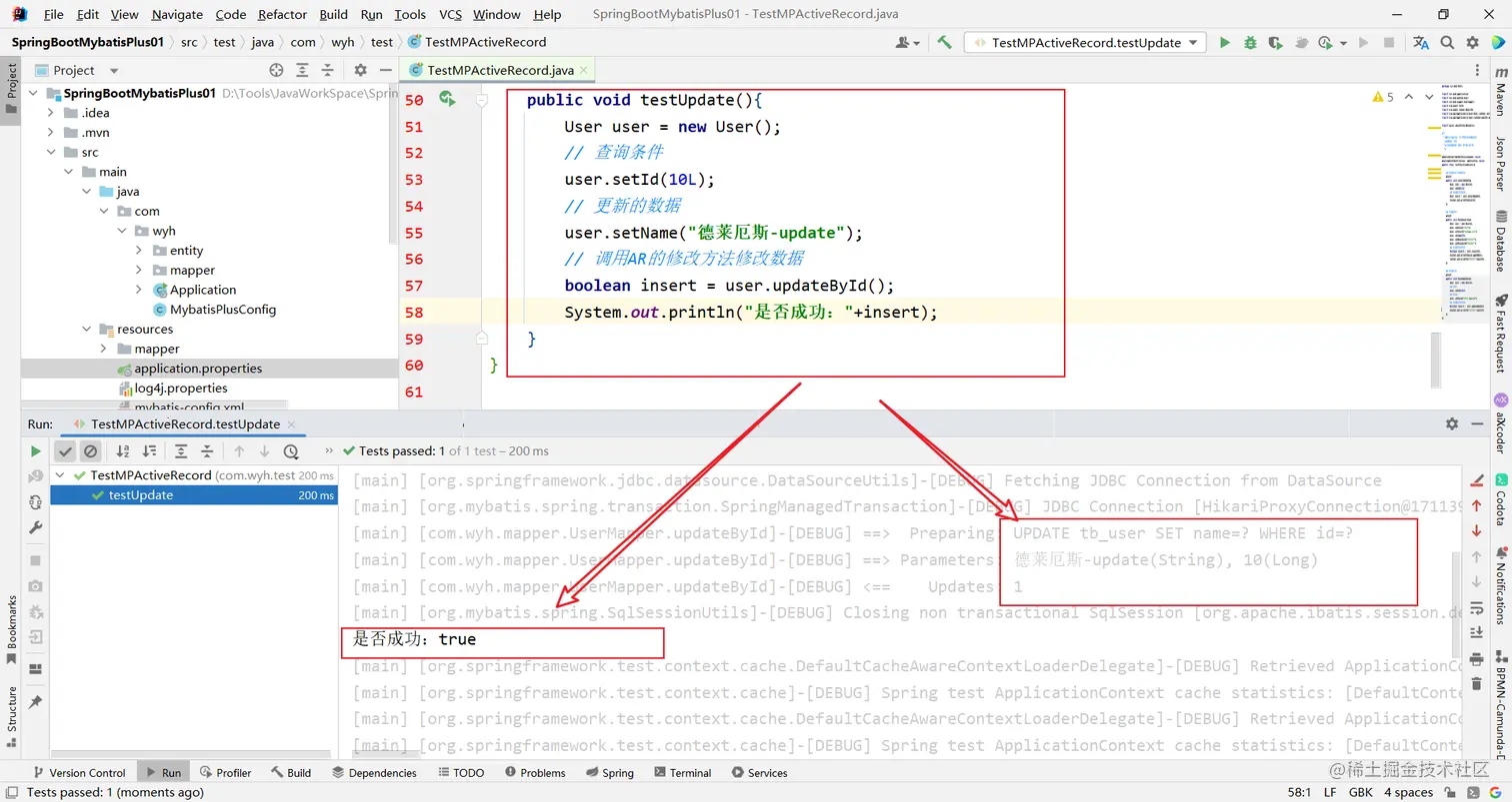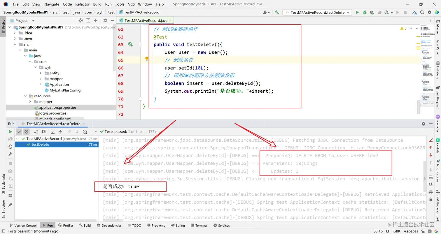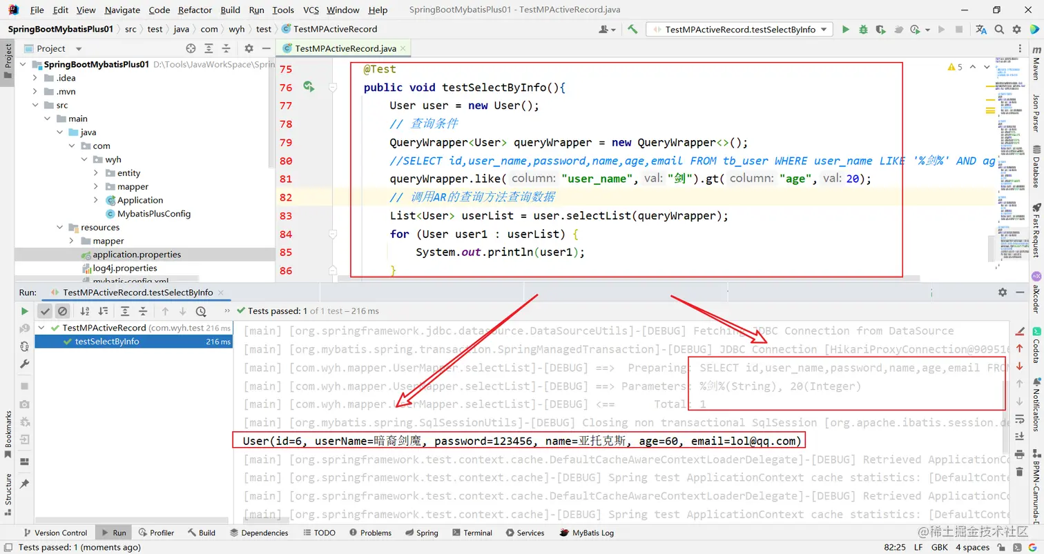 // 测试AR查询操作 通过ID查询数据 @Test public void selectByID(){ User user = new User (); user.setId( 1 L); // 调用AR的查询方法查询数据 User user1 = user.selectById(); System. out .println(user1); }