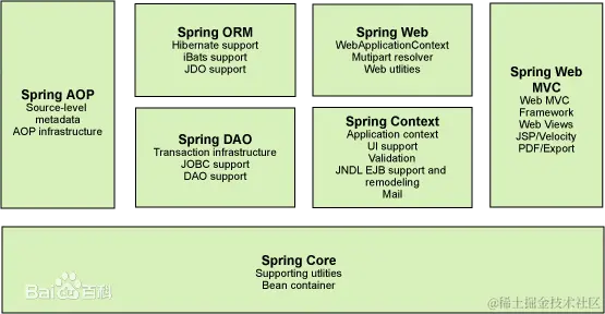 其实,spring生态中的内容丰富多彩,除了上图提到的这些模块,如今spring已经发展到了springboot和springcloud,为微服务等后端技术栈提供非常优质的解决方案。