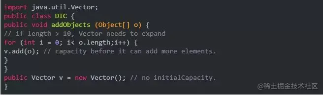 JVM 为 Vector 扩充大小的时候需要重新创建一个更大的数组,将原原先数组中的内容复制过来,后,原先的数组再被回收。