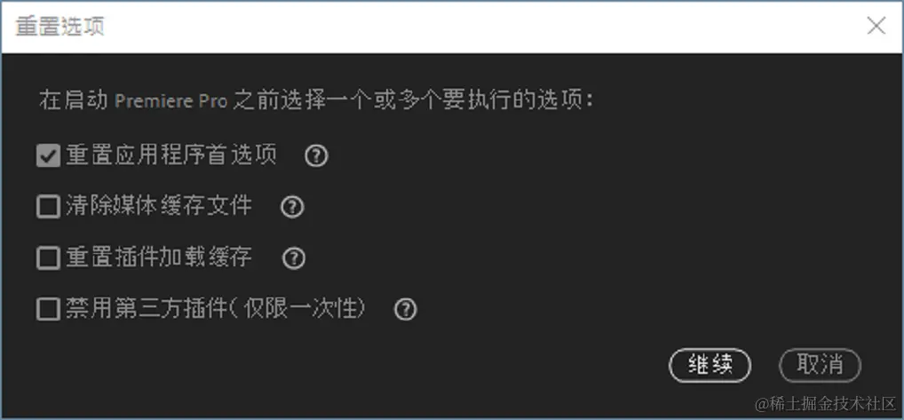 使用Premiere Pro中全新的启动时重置选项进行定期维护和清理系统,然后更新到应用程序的新版本或诊断和排除应用程序问题