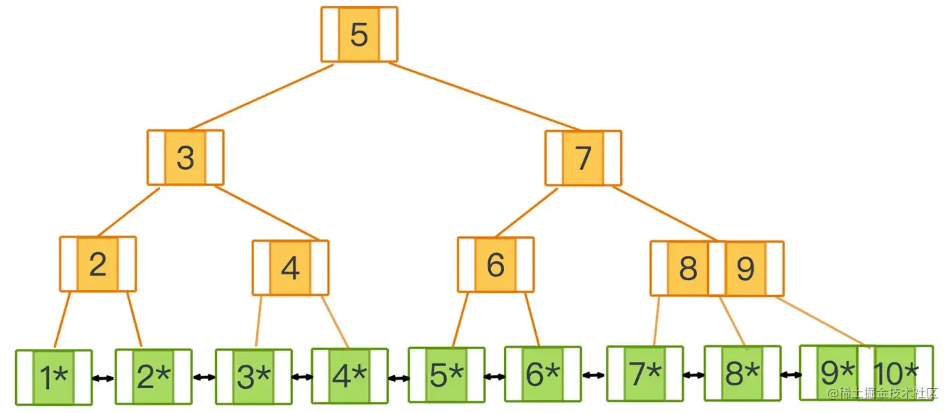 - B+ 树的中间节点不会存储数据指针,而只有叶子节点才会存储,中间节点只用于存储到叶子节点的路由信息