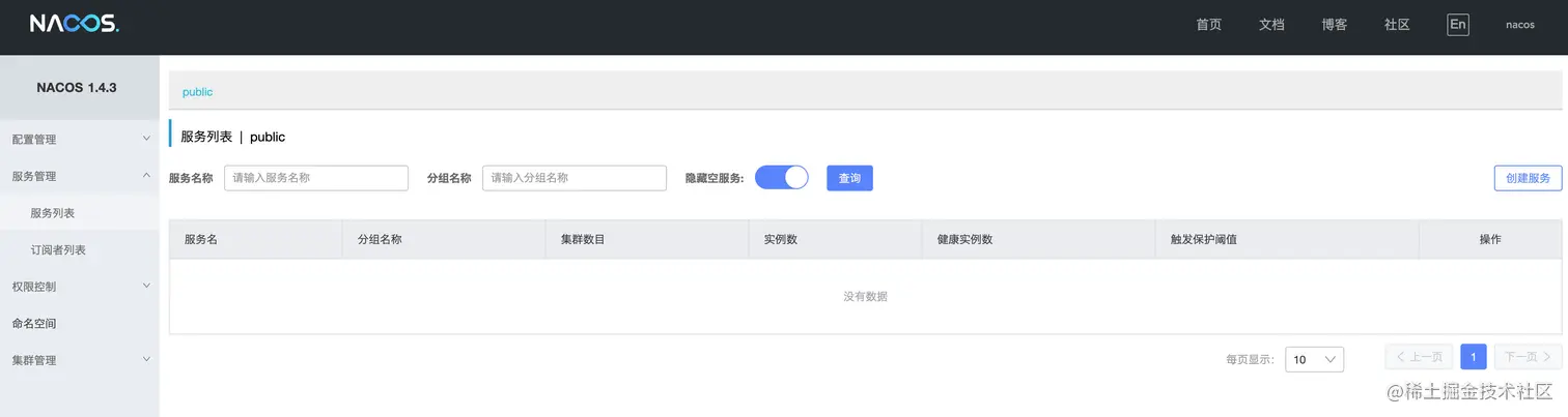 默认的用户名和管理员密码都是nacos,直接登陆即可,可以看到进入管理页面之后功能也是相当丰富: