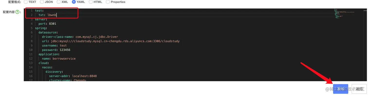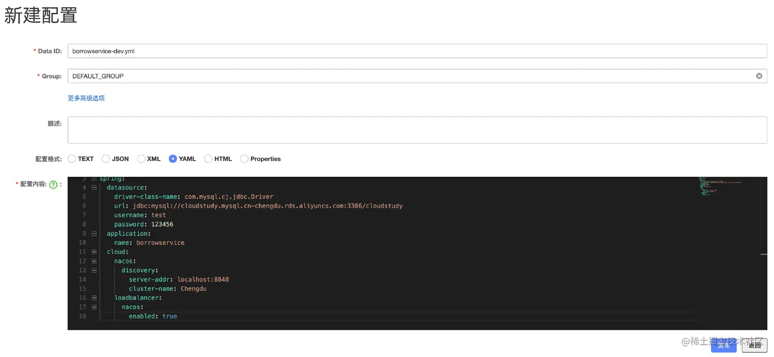 注册信息配置完成之后,接着我们需要将配置文件也放到Nacos中,让Nacos管理配置,这样我们就可以对配置进行热更新了,一旦环境需要变化,只需要直接在Nacos中修改即可。