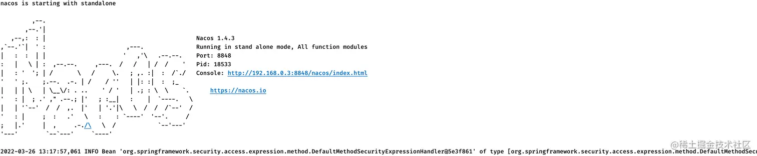 OK,启动成功,可以看到它的管理页面地址也是给我们贴出来了: http://localhost:8848/nacos/index.html,访问这个地址: