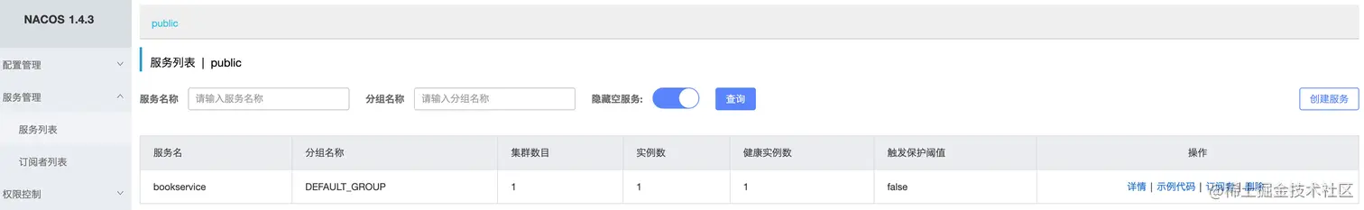 接着启动我们的图书服务,可以在Nacos的服务列表中找到: