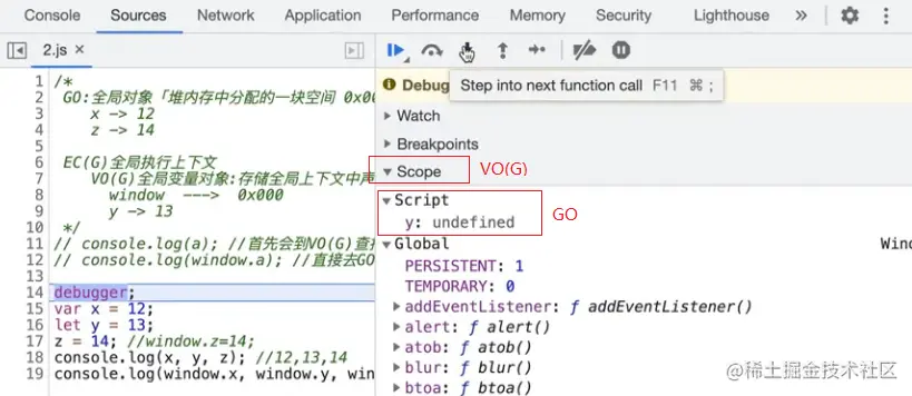 console.log(window.a); //直接去GO中查找是否存在a这个成员,如果没有则不会报错,值是undefined